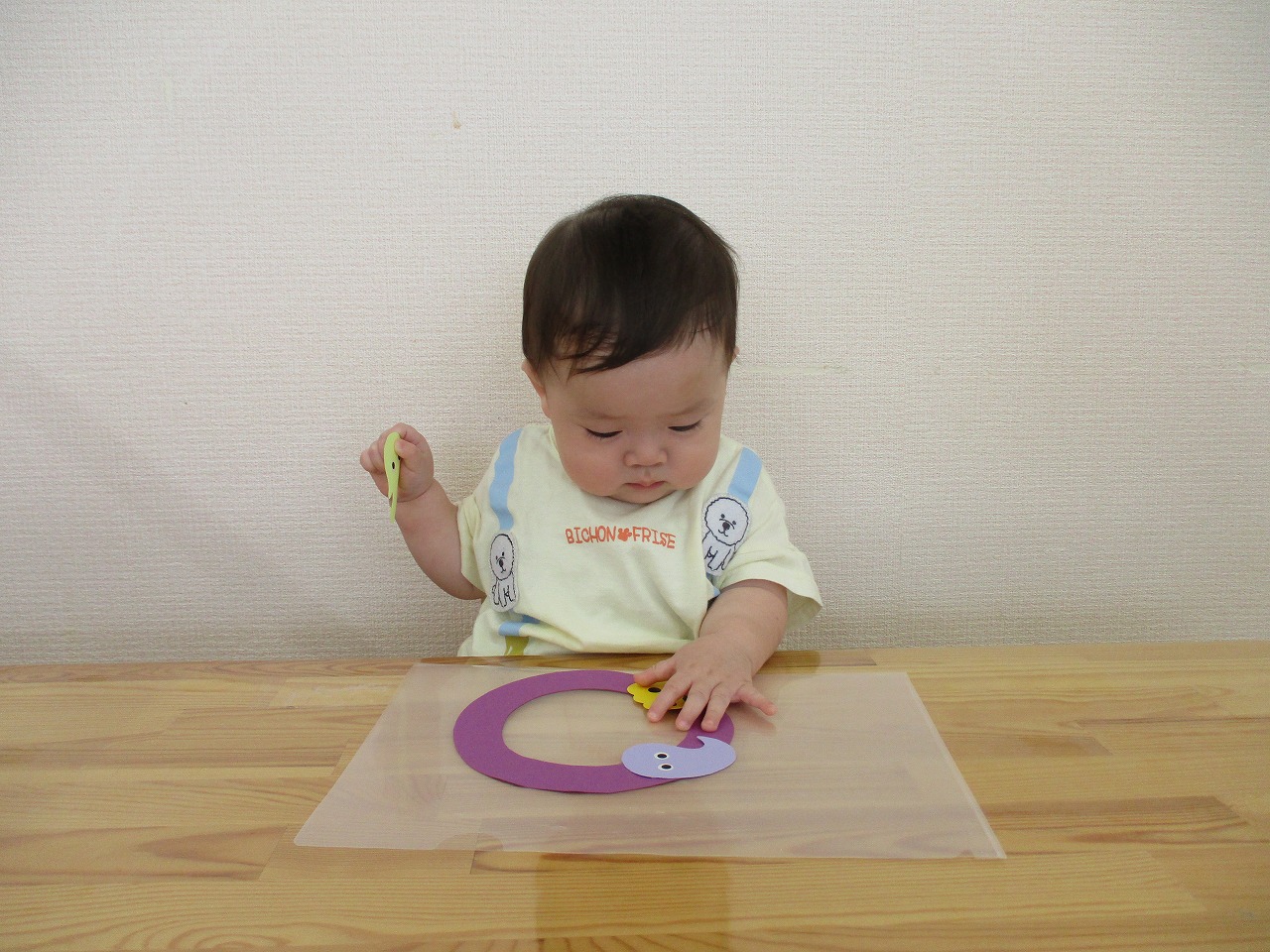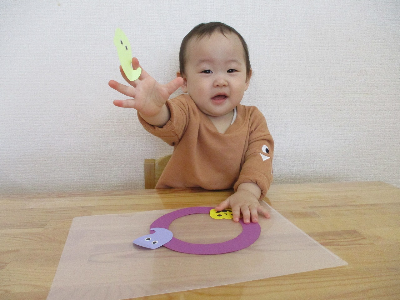 「ここに貼るよ~!」と教えると、その場所に貼ろうとする姿もみられ驚きました!!
