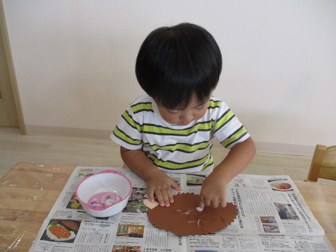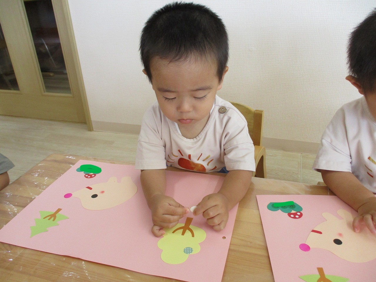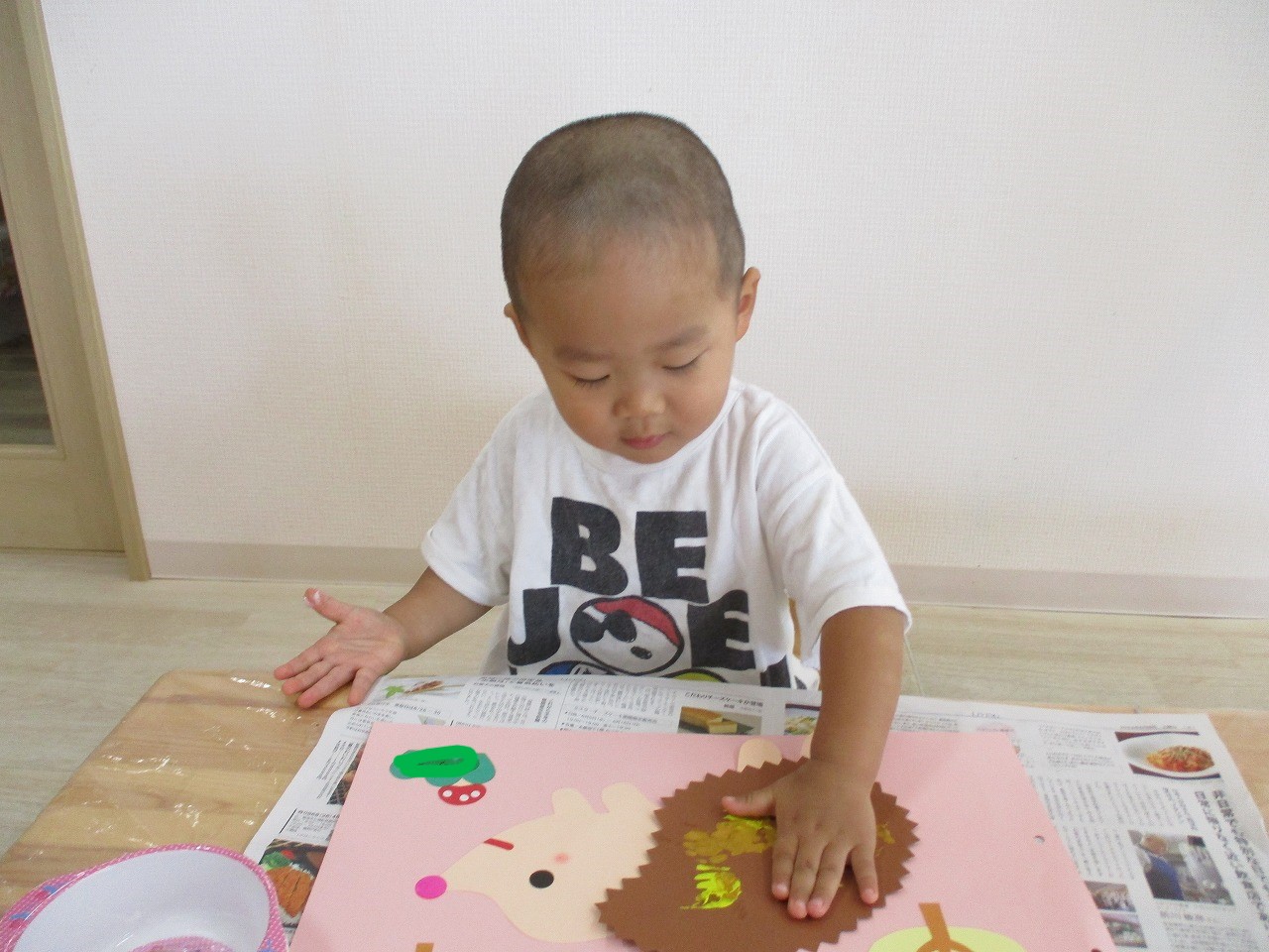 糊のベタベタした感触にも慣れてきた様子で、上手に糊付けができていましたよ!
