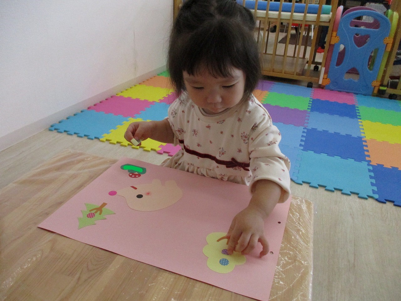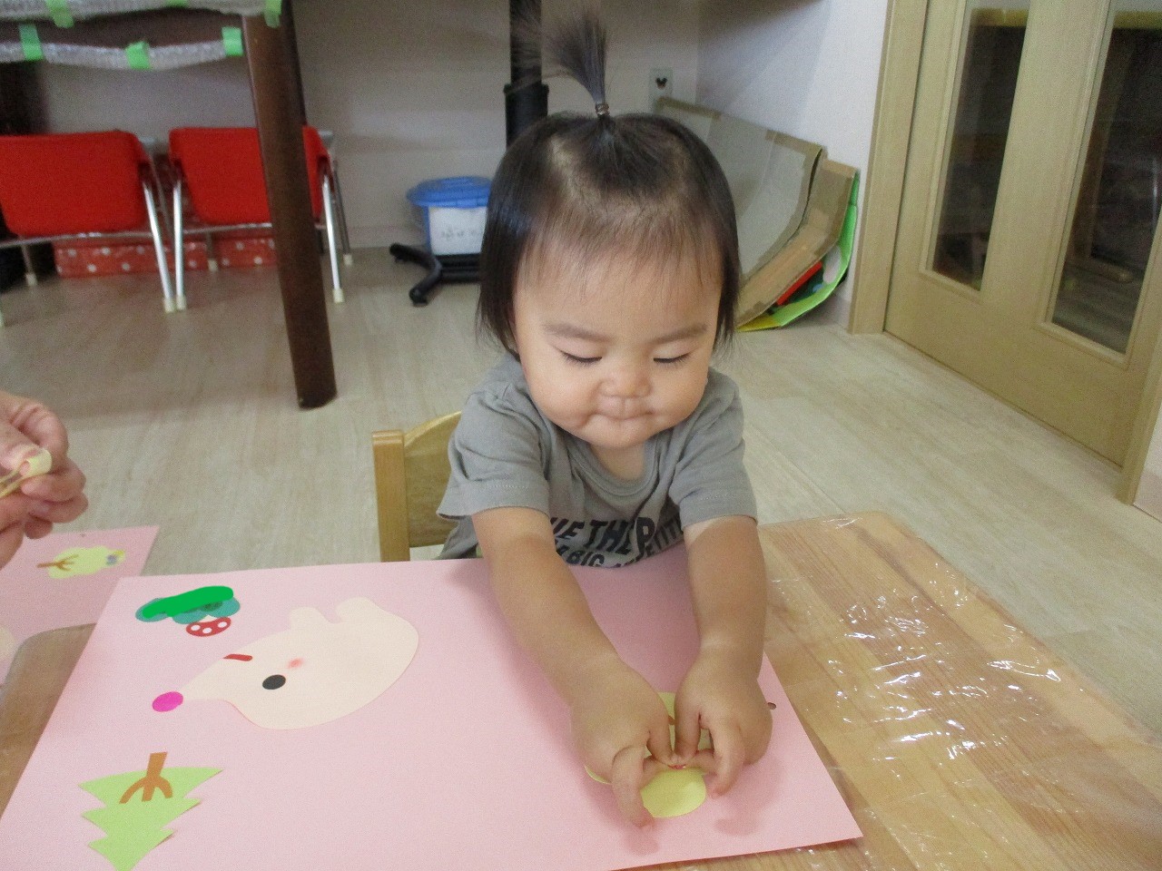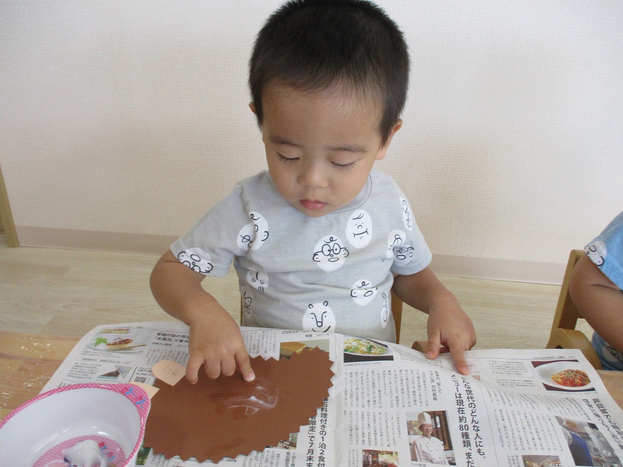 糊のベタベタした感触にも慣れてきた様子で、上手に糊付けができていましたよ!