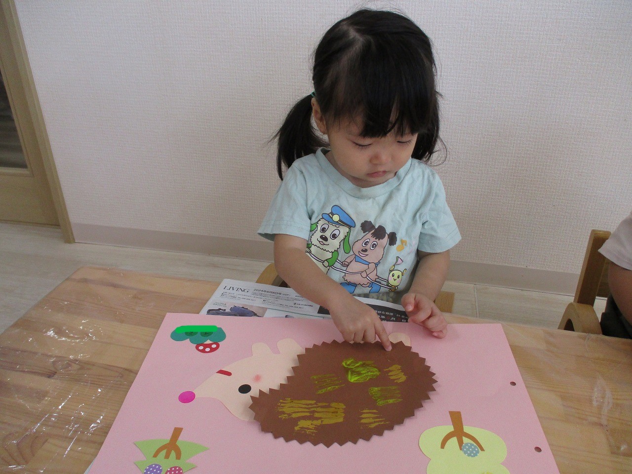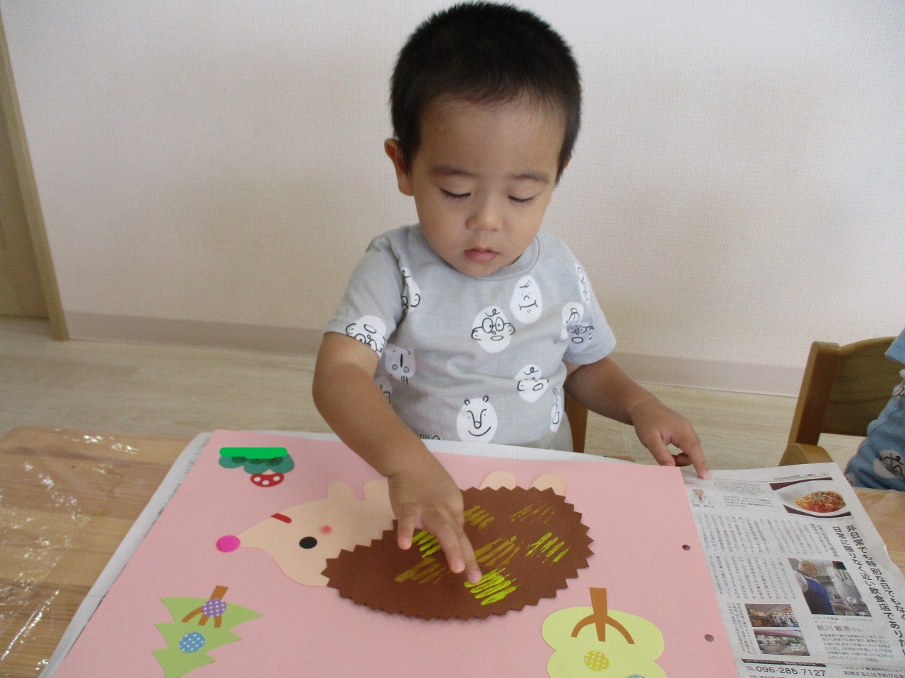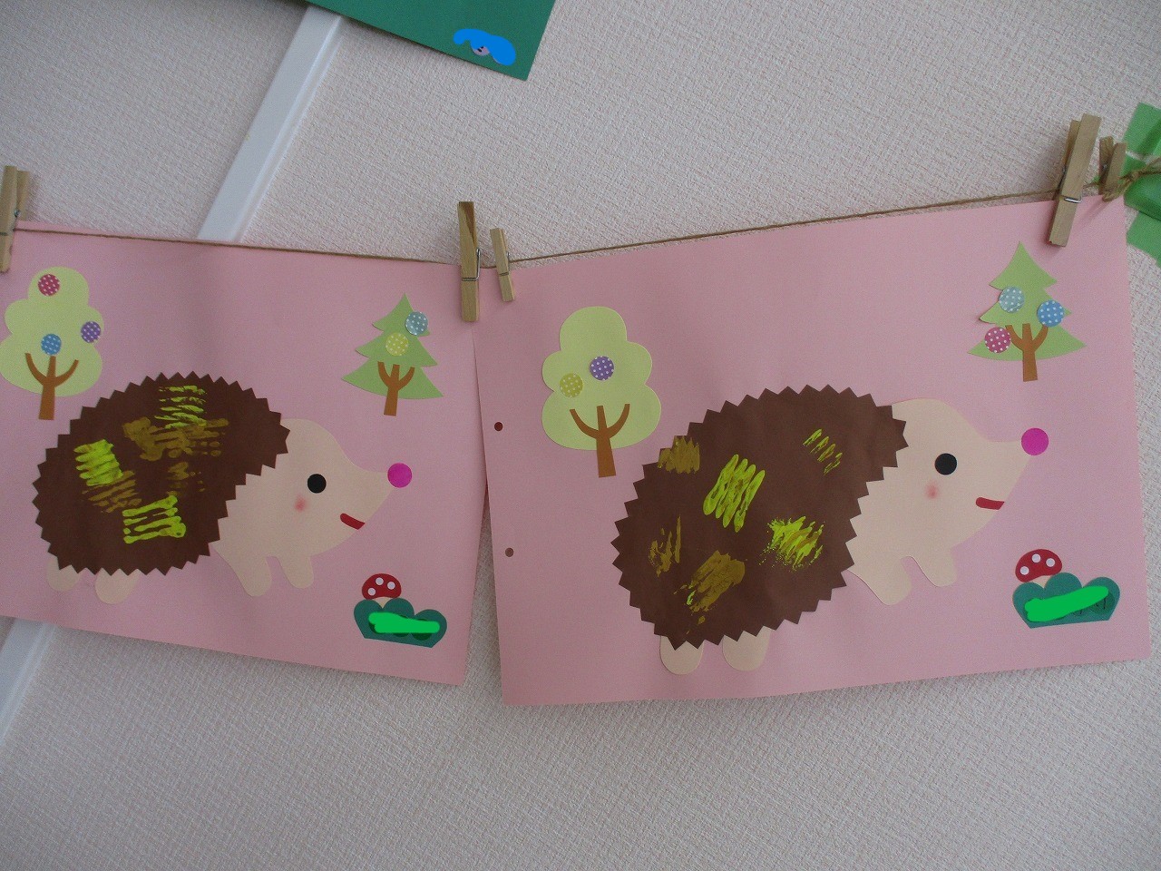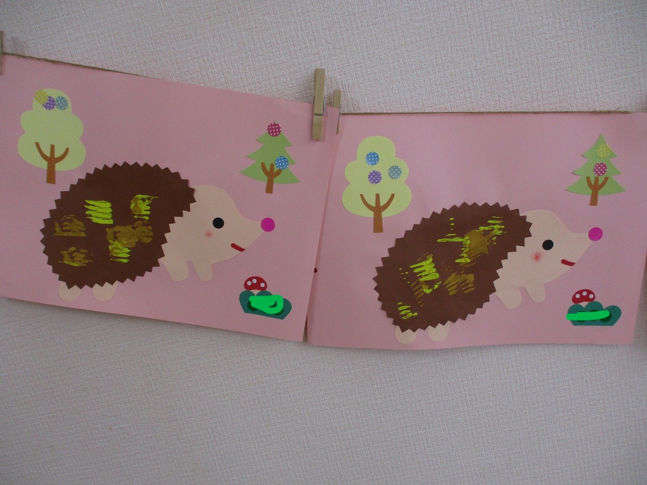 ハリネズミはこんな動物だよ!と写真を見せてから制作を始めました。